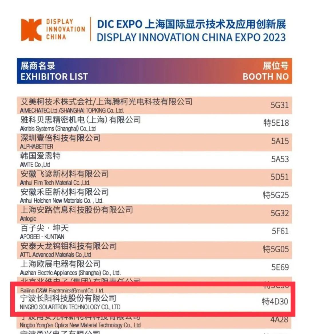 近日,中国(上海)国际显示技术及应用创新展(DIC EXPO 2023)于8月29-31日在上海新国际博览中心顺利举办,薄膜供应链品牌齐聚,共探行业前景,共谋行业发展大计。宁波蓝狮科技股份有限公司受邀参加,展示技术创新和应用领域。