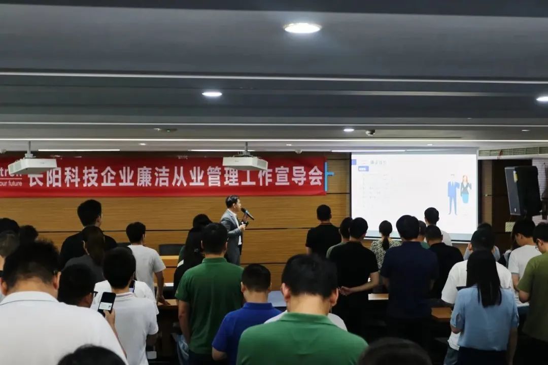 蓝狮科技总经理杨衷核全面分析了国家对于中小企业廉洁从业建设的重视和公司员工廉洁从业的重要性。他指出,廉洁从业建设要练好企业内功,提高法制观念、经营能力和管理水平,筑牢守法合规经营的廉洁底线,依法经营、依法治企、依法维权,认真履行环境保护、安全生产、职工权益保障等社会责任;同时要筑好职工防护,为员工提供自律自强、公平竞争、忠实勤勉、诚实守信的优良环境,坚决杜绝不正当利益的输送行为。