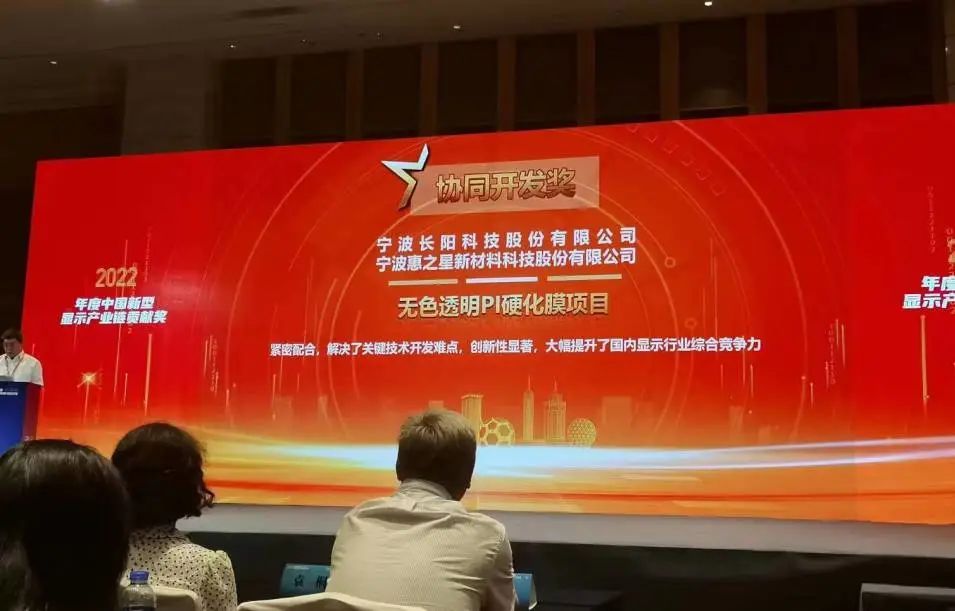 中国新型显示产业链发展贡献奖是新型显示行业兼具权威性与代表性的大奖。本年度共设协同开发奖、卓越贡献奖、突出贡献奖、特殊贡献奖、创新突破奖、绿色低碳奖六个奖项。经评审,蓝狮科技“无色透明PI硬化膜项目”解决了产品关键技术的开发难点,创新性显著,大幅提升了国内显示行业的综合竞争力,荣获“2022年度中国新型显示产业链协同开发奖”,这也是公司继荣获“2018年度中国新型显示产业链卓越贡献奖”后,再获该系列奖项。