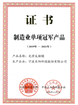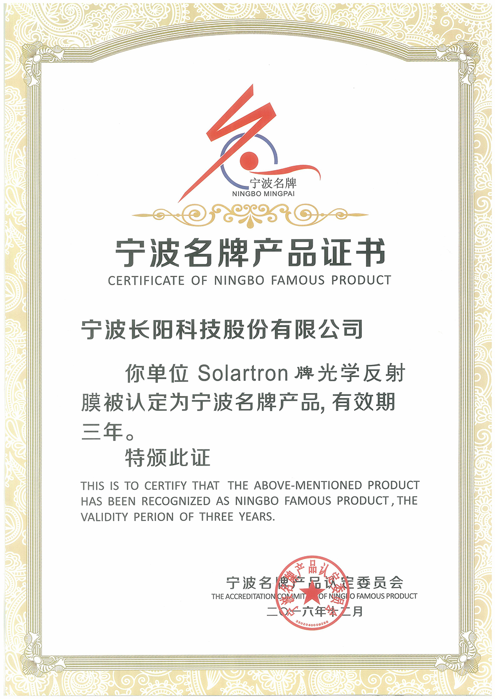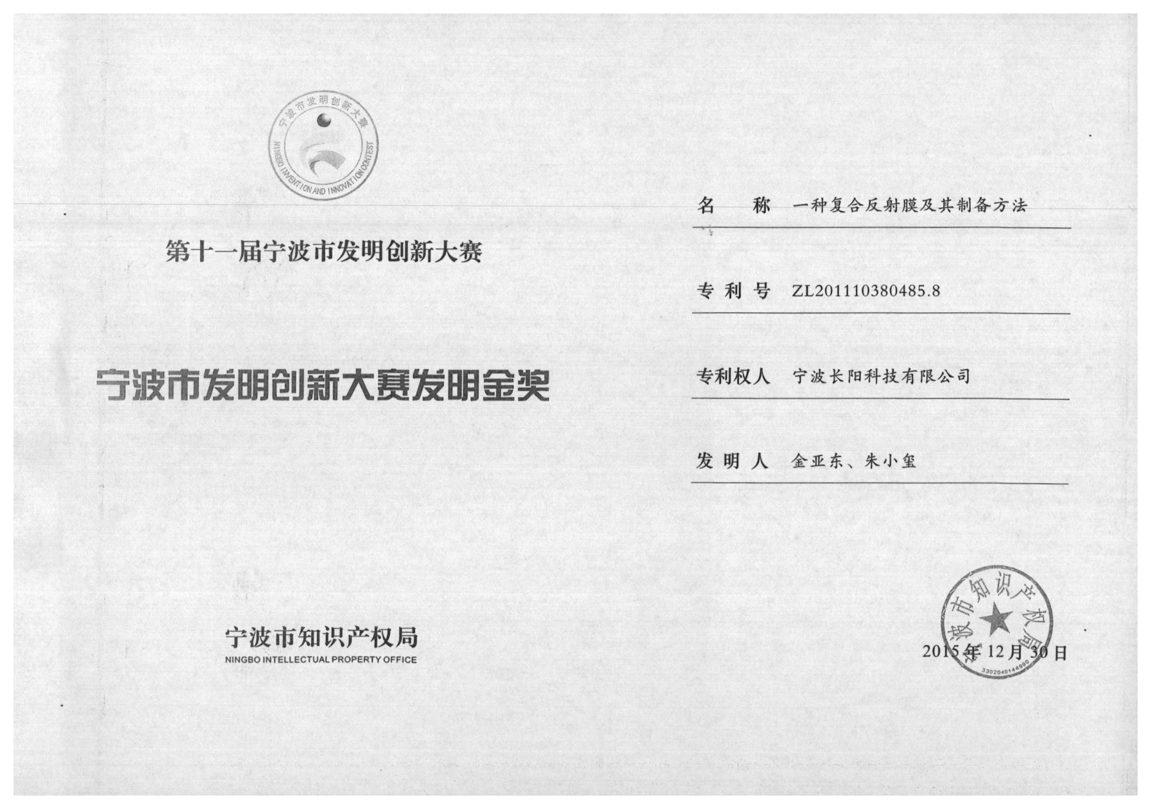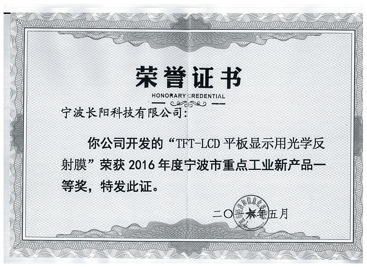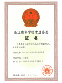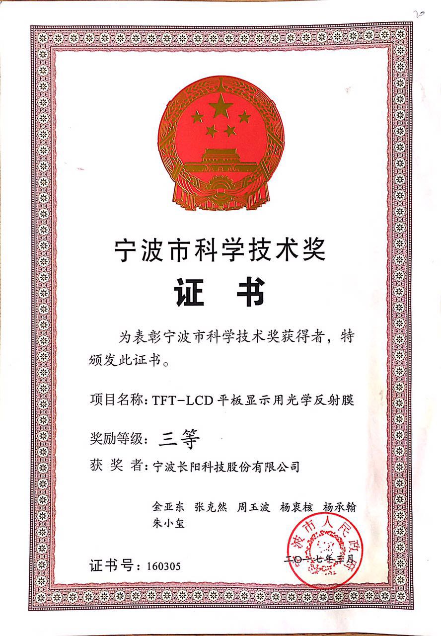 2017年:宁波市科学技术奖(TFT-LCD平板显示用光学反射膜)