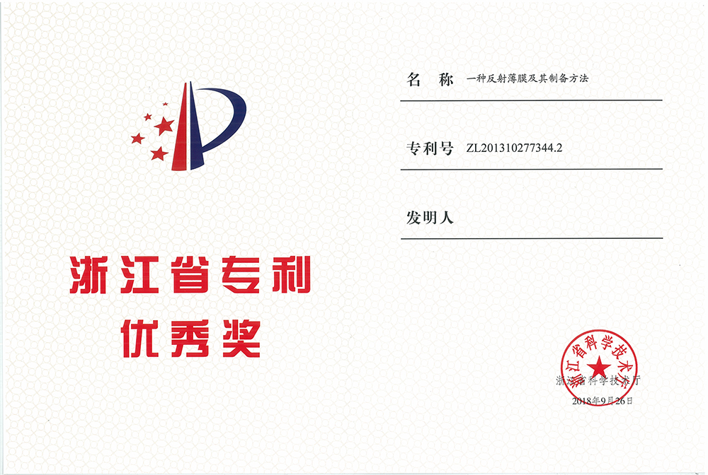 2018年:浙江省科学技术进步奖(TFT-LCD平板显示用光学反射膜)